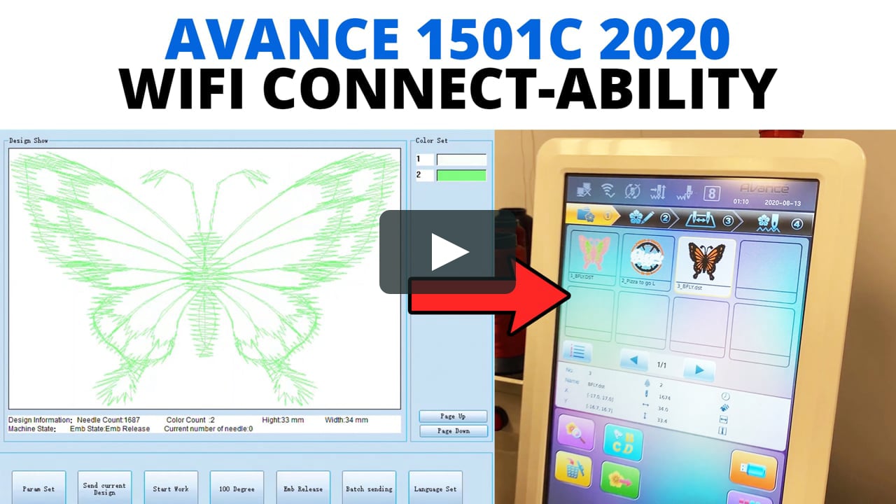 The Avancé 1201C is a 12 needle embroidery machine designed to give you that combination of price features and reliability that makes it easy to get into the commercial embroidery business. Avance 1501C 2020 Direct Connect v2. Handle large and small orders co-ordinate hoop changes for less downtime between runs.